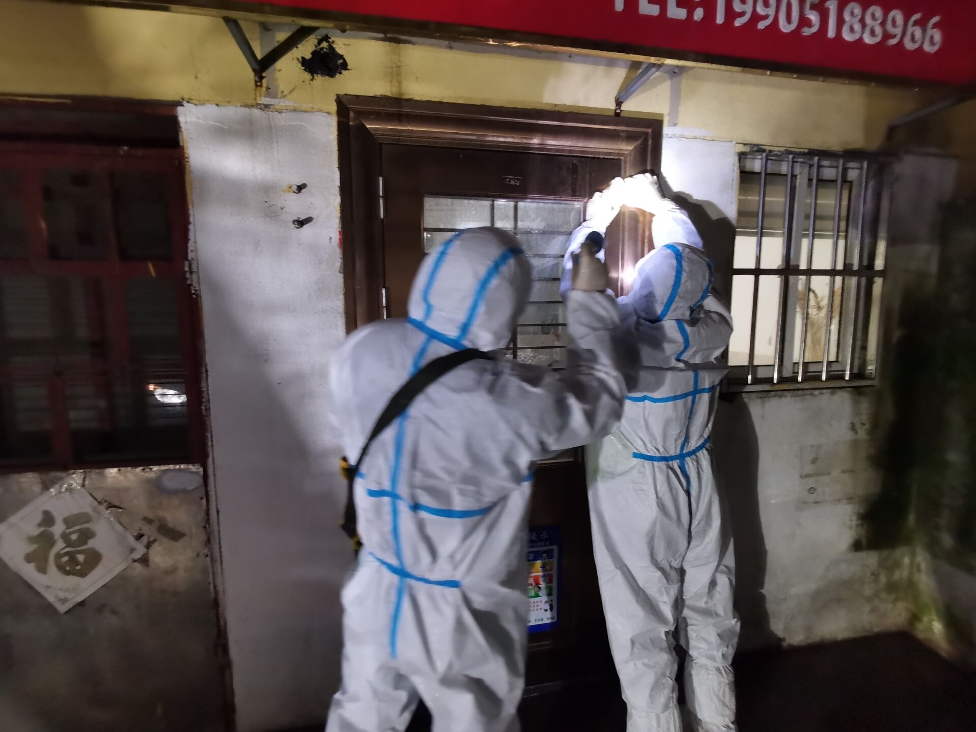 由于新橋社區(qū)多為自建房,門牌號混亂難找,房地產(chǎn)和資產(chǎn)公司的志愿者們冒雨堅(jiān)守,逐戶排查登記信息,宣傳防護(hù)知識,講解防控要求,并對重點(diǎn)監(jiān)控住戶安裝防疫門磁。