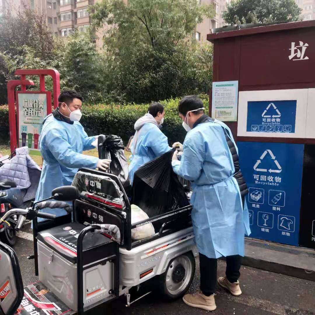 在萬潤社區(qū)藍(lán)天華僑城,金航和神特公司的志愿者們變身環(huán)衛(wèi)工人,轉(zhuǎn)運(yùn)轄區(qū)集中隔離點(diǎn)和居家隔離單元生活垃圾,并負(fù)責(zé)對轄區(qū)集中隔離點(diǎn)以及居家隔離小區(qū)單元的生活垃圾進(jìn)行專業(yè)化消殺與轉(zhuǎn)運(yùn),確保小區(qū)垃圾日產(chǎn)日清,全程多次消毒消殺,閉環(huán)無縫轉(zhuǎn)運(yùn)。