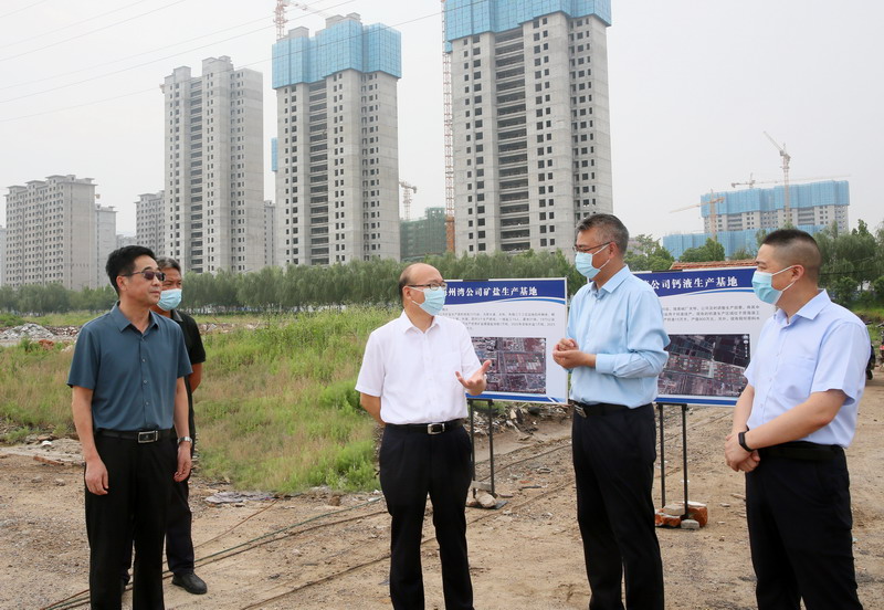 丁銳一行先后到海州灣公司礦鹵復產、翔立市政工程、海州灣工業(yè)園、鈣液生產區(qū)域和美多利科技創(chuàng)業(yè)園等現(xiàn)場,詳細了解鹽業(yè)生產、項目建設、土地開發(fā)、安全管理等情況,并為奮戰(zhàn)在一線的員工送去防暑降溫物品。