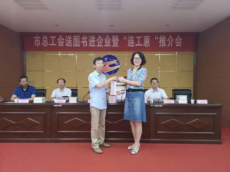 7月23日,連云港市總工會副主席孫月春一行,到市工業投資集團開展贈書活動。集團公司工會主席劉承志參加活動。