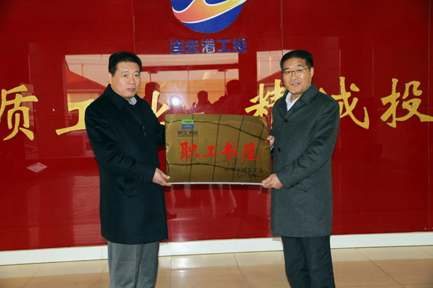 12月19日下午,市總工會(huì)黨組書記、副主席丁維杰率領(lǐng)市總組織部、宣教部負(fù)責(zé)人為獲得“全國職工書屋示范點(diǎn)”的徐圩投資公司授牌。集團(tuán)公司黨委副書記戴鴻鳴、工會(huì)主席劉承志參與授牌。