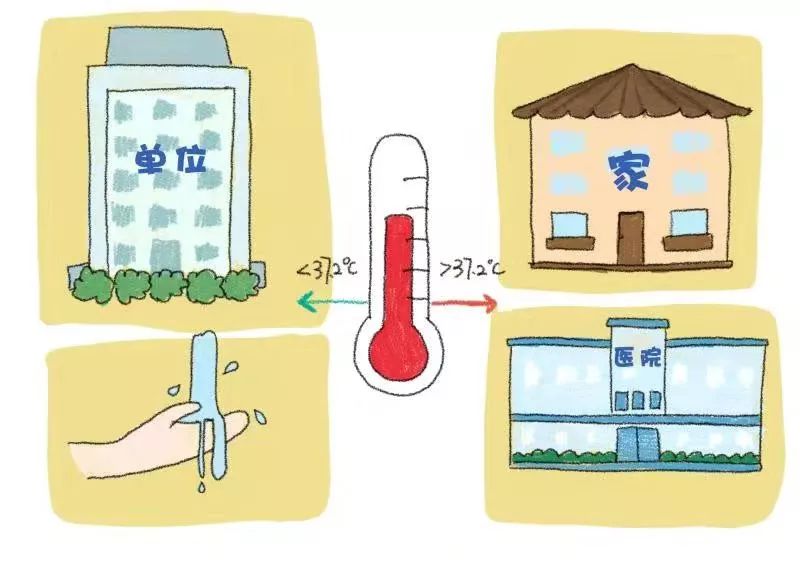 進入辦公樓前自覺接受體溫檢測,體溫正常可入樓工作,并到衛生間洗手。若體溫超過37.2℃,請勿入樓工作,并回家觀察休息,必要時到醫院就診。