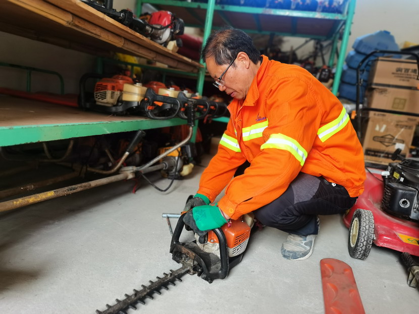 次檢修與保養,重點割灌機、草坪機、綠籬機、綠籬車進行全面細致檢查認真查看設備的運行狀態,檢查設備的部件是否完好,對發現的問題及時進行修復和更換。同時,還對設備進行了清洗和潤滑,確保設備在運行過程中能夠順暢無阻。