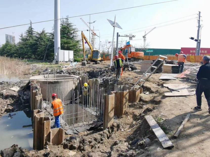 節日期間,盛達市政分公司在做好對轄區車流較多路段的巡查與維護工作同時,還做好突發情況應急處理工作,在面對創智大廈大理石面板遭到突發損壞時,該公司有條不絮,第一時間調配人員,展開緊急修復工作,及時為創智大廈工作人員和群眾提供安全道路環境。同時,該公司針對環保督察組進駐開發區事項,全力做好在建工程安全文明施工,雨污水班組加班加點對重點區域進行巡查,在東方大道與躍湖路交匯處的污水連接井項目上,施工人員有序進行鋼筋捆扎與模板支撐作業,展現出他們對工作任務的專注與效率;興業路和友誼路的雨水管網也在進行一系列改建與加固,包括澆筑混凝土蓋板,確保城市基礎設施的完善和持續運作,各施工現場均做到了圍擋、指示牌、路錐等擺放規范,工作服、安全帽等穿戴整齊,安全措施到位。