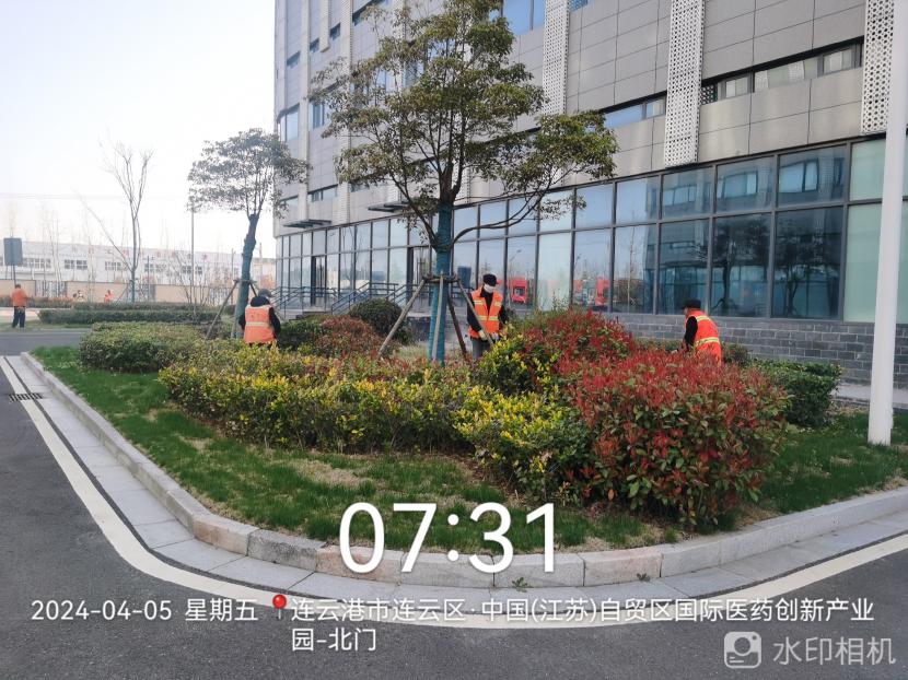 ? ? 在國(guó)際醫(yī)藥創(chuàng)新產(chǎn)業(yè)園,一部分工人們正在對(duì)苗木、模紋進(jìn)行整形修剪,去除萌蘗,除去多余的嫩芽和生長(zhǎng)部位不當(dāng)?shù)闹l(徒長(zhǎng)枝、競(jìng)爭(zhēng)枝),抹掉剪口過(guò)密芽,培養(yǎng)出營(yíng)養(yǎng)均衡、樹(shù)勢(shì)健壯的合理樹(shù)型。另一部分工人們?cè)谶M(jìn)行草坪修剪,修剪后的草坪整齊美觀、松軟蓬松,增強(qiáng)了其抗蟲(chóng)害和一定的抗病能力。