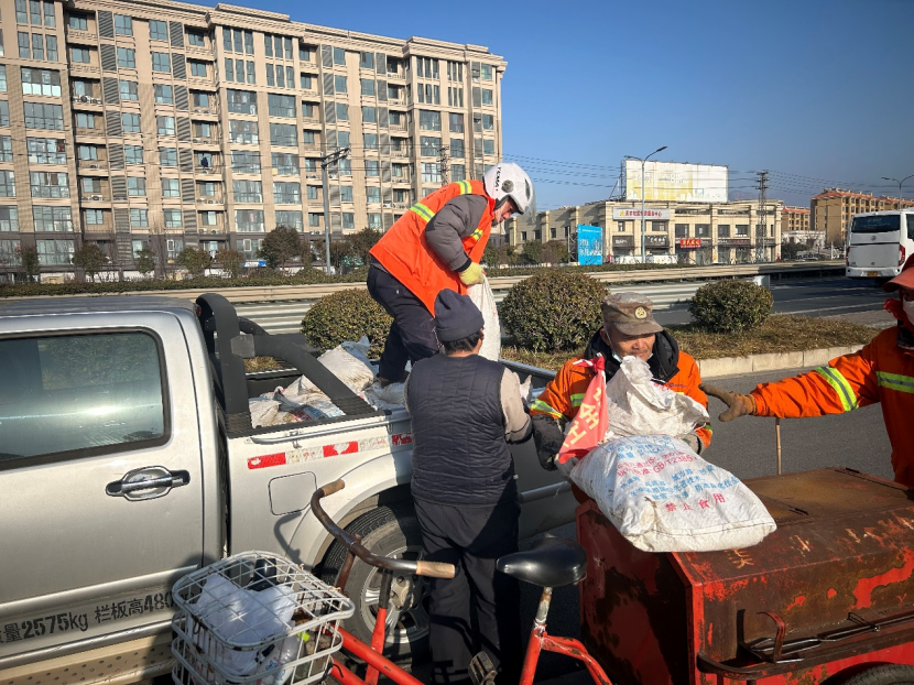 本次任務共出動環(huán)衛(wèi)分公司鏟車一輛、自卸車一輛、保潔員工12名,每個班放置融雪劑40袋,歷時兩個下午時間將九個班共計360余袋融雪劑全部發(fā)放到位。